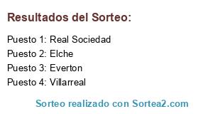 Lista de participantes: Elche, Everton, Real Sociedad, Villarreal.