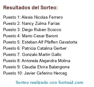 Lista de participantes: Emanuel Aichino, Ezequiel Aichino, Leonardo Agustin Anchino, Claudia Elvira Balangione, Mario Cesar Baroni, Jorge Alberto Brusa, Stella Maris De Fatima Bustos, Samuel Daniel Dipiazza, Nancy Zulma Farías, Alexis Nicolas Ferrero, Nahuel Roberto Gaillard, Micaela Soledad Gallardo, Gonzalo Martin Gallo, Verónica Andrea Gallo, Patricia Catalina Gerber, Martin Fabian Giacone, Martin Eduardo Gonzalez, Javier Ceferino Herceg, Natalia Marcela Juan, Valentina Lopez, Carolina Martino, Maria Soledad Mina, Antonela Alejandra Molina, Silvana Veronica Negri, Roberto Barrera, Juan Eduardo Pedrone, Esteban Alf Pfaffen Gavatorta, Nicolás Matías Pipino, Gerardo Daniel Remi, Daniel Jesus Rios, Jorge Lorenzo Sanchez, Mauricio Damian Sanchez, Diego Ruben Scocco, Ludmila Candela Sticca, Edgardo Antonio Valdemarin, Sandra Analia Valdemarin, Ezequiel Vietto, Daniela Beatriz Viotti, Lucas Andrés Valdemarín.