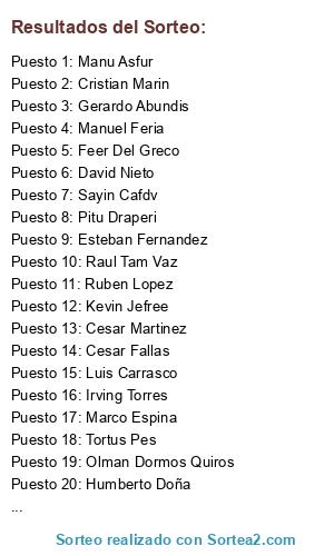 Resultados del sorteo: