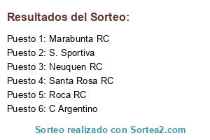 Lista de participantes: S. Sportiva, C Argentino, Santa Rosa RC, Marabunta RC, Neuquen RC, Roca RC.