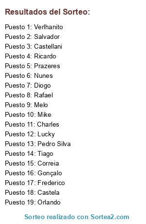 Resultados del sorteo:
