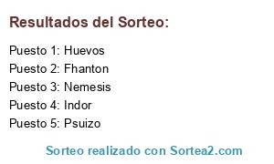 Lista de participantes: Nemesis, Huevos, Fhanton, Indor, Psuizo.