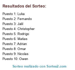 Resultados del sorteo: