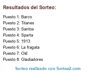 Lista de participantes: Titanes, Si al pes, Sparta, Old, La fragata, Santos, Gladiadores, 1913, Barco.
