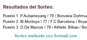 Lista de participantes: O.De Marcos / 78 / Athletic Bilbao / Boyacá Chicó FC, M.Montoya / 77 / F.C Barcelona / Boyacá Chicó FC, P.Aubameyang / 79 / Borussia Dortmund /Boyacá Chicó FC.