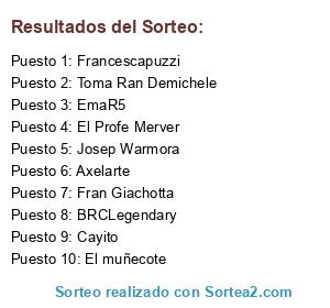 Lista de participantes: Josep Warmora, Toma Ran Demichele, El muñecote, BRCLegendary, Axelarte, El Profe Merver, Fran Giachotta, EmaR5, Cayito, Francescapuzzi.