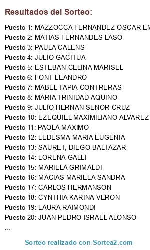 - Puesto 1: MAZZOCCA FERNANDEZ OSCAR EMILIO