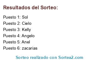 Lista de participantes: zacarias, Cielo, Anel, Angelo, Kelly, Sol.