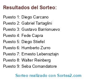 Lista de participantes: Diego Carcano, Walter Reinberg, Pablo Fioretti, Seba Comandatore, Alejandro Jecke, Ariel Petrecca, Gustavo Barrionuevo, Juanca Lucero, Eduardo Rodriguez, Gabriel Tartaglini, Seba Magariños, Ernesto Lebensztajn, Gabi Piseri, Carlos Colagioia, Diego Stiefel, Fede Capra, Humberto Zurro.