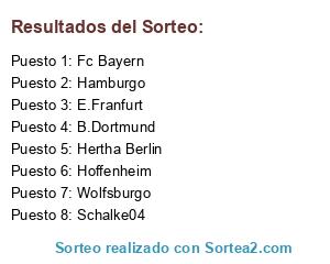 Lista de participantes: Wolfsburgo, Hamburgo, Hertha Berlin, B.Dortmund, E.Franfurt, Schalke04, Hoffenheim, Fc Bayern.