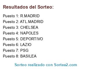 Lista de participantes: LAZIO, ATL.MADRID, NAPOLES, BASILEA, DEPORTIVO, CHELSEA, R.MADRID, PSG.