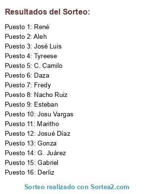 Resultados del sorteo: