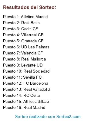 Tipo de sorteo: Partidos de fútbol