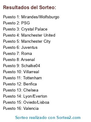 Resultados del sorteo: