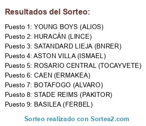 Lista de participantes: STADE REIMS (PAKITOR), BASILEA (FERBEL), ASTON VILLA (ISMAEL), CAEN (ERMAKEA), ROSARIO CENTRAL (TOCAYVETE), HURACÁN (LINCE), YOUNG BOYS (ALIOS), BOTAFOGO (ALVARO), SATANDARD LIEJA (BNRER).