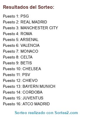 Resultados del sorteo:
