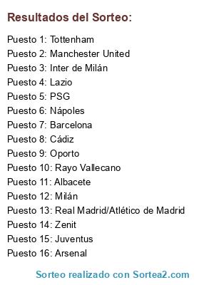 Resultados del sorteo: