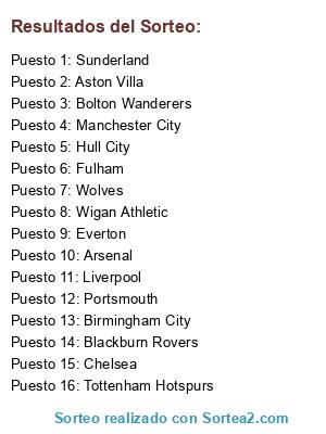 Lista de participantes: Liverpool, Chelsea, Manchester City, Fulham, Aston Villa, Arsenal, Sunderland, Blackburn Rovers, Tottenham Hotspurs, Wolves, Everton, Portsmouth, Wigan Athletic, Hull City, Birmingham City, Bolton Wanderers.