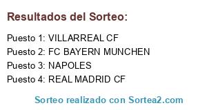 Lista de participantes: FC BAYERN MUNCHEN, REAL MADRID CF, NAPOLES, VILLARREAL CF.