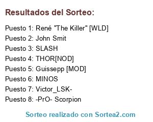 Lista de participantes: MINOS , SLASH, René "The Killer" [WLD], John Smit, Victor_LSK-, Guissepp [MOD], THOR[NOD], -PrO- Scorpion.