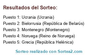 Lista de participantes: Bielorrusia (República de Belarús), Grecia (República Helénica), Montenegro (Montenegro), Noruega (Reino de Noruega), Ucrania (Ucrania), .