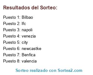 Lista de participantes: Benfica, napoli, valencia, Bilbao, newcastke, venezia, lfc, city.