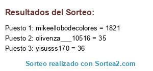 Lista de participantes: mikeellobodecolores = 1821, olivenza___10516 = 35, kleerplay = 595, bandido_666_ = 2235, aitor__800 = 107, junior.xss = 95, yisusss170 = 36, eldeltas07126 = 95.
