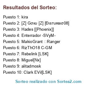 Lista de participantes: alitadmosk, kira, Enterrador -SVyM-, RizThO18 C-GM, Clark EVil[LSK], [Z] Gσкυ [Z] [Ðιѕтυявισ08], Hades [[Phoenix]], Rebelink [LSK], Miguel[Nx], MakioGrant ✟Ranger.
