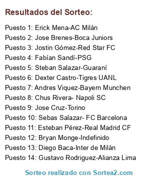 Lista de participantes: Esteban Pérez-Real Madrid CF, Jose Cruz-Torino, Andres Viquez-Bayern Munchen, Jose Brenes-Boca Juniors, Erick Mena-AC Milán, Chus Rivera- Napoli SC, Dexter Castro-Tigres UANL, Steban Salazar-Guaraní, Gustavo Rodriguez-Alianza Lima, Sebas Salazar- FC Barcelona, Diego Baca-Inter de Milán, Jostin Gómez-Red Star FC, Bryan Monge-Indefinido, Fabían Sandí-PSG.