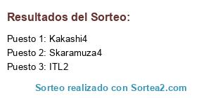 Lista de participantes: drii, drii2, drii3, drii4, drii5, drii6, ITL, ITL2, ITL3, ITL4, ITL5, ITL6, Skaramuza, Skaramuza2, Skaramuza3, Skaramuza4, Juvenil, Juvenil2, Juvenil3, Juvenil4, Kakashi, Kakashi2, Kakashi3, Kakashi4, Agoncillo, Agoncillo2, Divo.