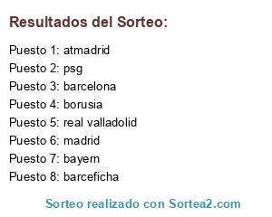 Lista de participantes: real valladolid, barcelona , madrid, bayern, atmadrid, borusia, barceficha, psg.