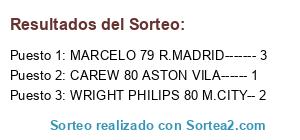 Lista de participantes: CAREW 80 ASTON VILA------ 1, WRIGHT PHILIPS 80 M.CITY-- 2, MARCELO 79 R.MADRID------- 3.
