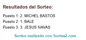 Lista de participantes: 1. BALE, 2. MICHEL BASTOS, 3. JESUS NAVAS.