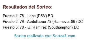 Lista de participantes: Elijo el ojeador 2, 79 - Abdellaoue 79 (Hannover 96) DC, 78 - G. Ramirez (Southampton) DC, 78 - Lens (PSV) ED.