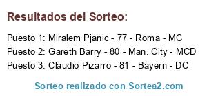 Lista de participantes: Miralem Pjanic - 77 - Roma - MC, Gareth Barry - 80 - Man. City - MCD, Claudio Pizarro - 81 - Bayern - DC.
