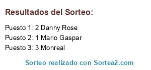 Lista de participantes: 1 Mario Gaspar, 2 Danny Rose, 3 Monreal.