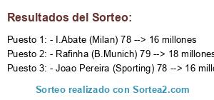 Lista de participantes: - Rafinha (B.Munich) 79 --> 18 millones, - Joao Pereira (Sporting) 78 --> 16 millones, - I.Abate (Milan) 78 --> 16 millones.