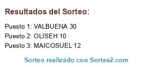 Lista de participantes: VALBUENA 30, MAICOSUEL 12, OLISEH 10.
