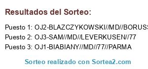 Lista de participantes: OJ1-BIABIANY//MD//77//PARMA, OJ2-BLAZCZYKOWSKI//MD//BORUSSIA//80, OJ3-SAM//MD//LEVERKUSEN//77.