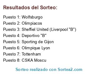 Lista de participantes: Olimpique Lyon, Sheffiel United (Liverpool "B"), Olimpiacos, Deportivo "B", CSKA Moscu, Sporting de Gijon, Wolfsburgo, Tottenham.