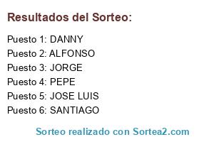 Lista de participantes: PEPE, JORGE, SANTIAGO, DANNY, ALFONSO, JOSE LUIS.