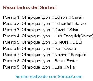 Lista de participantes: Olimpique Lyon FRANCIS COQUELIN, Olimpique Lyon Julio Alberto Buffarini, Olimpique Lyon Luis Advincula, Olimpique Lyon Emmanuel Okyere Boateng, Olimpique Lyon Clement Lenglet, Olimpique Lyon Nick Pope, Olimpique Lyon Eduardo Salvio, Olimpique Lyon Nadiem Amiri, Olimpique Lyon James Tavernier, Olimpique Lyon Moussa Sissoko, Olimpique Lyon Jerome Roussillon, Olimpique Lyon IÑAKI WILLIAMS, Olimpique Lyon Ricardo Centurión, Olimpique Lyon Lukas Hradecky, Olimpique Lyon Franco Emanuel Cervi, Olimpique Lyon Johan Mojica, Olimpique Lyon Luis Ezequiel(Chimy) Ávila, Olimpique Lyon Luis Milla, Olimpique Lyon Nazim Sangare.