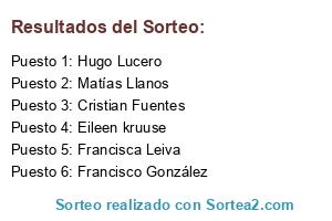 Lista de participantes: Cristian Fuentes, Francisco González, Eileen kruuse, Francisca Leiva, Matías Llanos, Hugo Lucero.