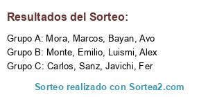Lista de participantes: Avo, Bayan, Sanz, Mora, Alex, Emilio, Fer, Javichi, Luismi, Marcos, Monte, Carlos.