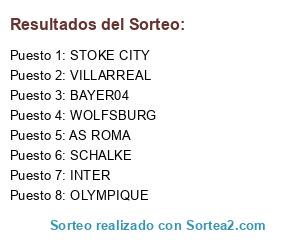 Lista de participantes: SCHALKE, STOKE CITY, BAYER04, INTER, VILLARREAL, AS ROMA, WOLFSBURG, OLYMPIQUE.