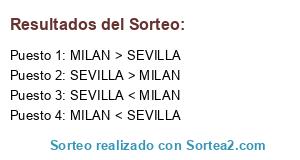 Lista de participantes: MILAN > SEVILLA, SEVILLA > MILAN, MILAN < SEVILLA, SEVILLA < MILAN.