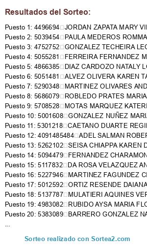 Resultados del sorteo: