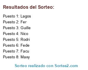 Lista de participantes: Fer, Fede, Rodri, Maxy, Lagos, Guille, Nico, Facu.
