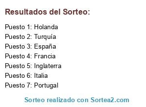 Lista de participantes: Turquía, Italia, Holanda, Francia, Portugal, España, Inglaterra.