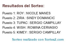 Lista de participantes: ZIRA SINDY DOMANCIC, KIMEY SERGIO CAMPILLAY, TUPAC SERGIO CAMPILLAY, ROY NICOLE MANES, WISH ROMINA CERVASIO.